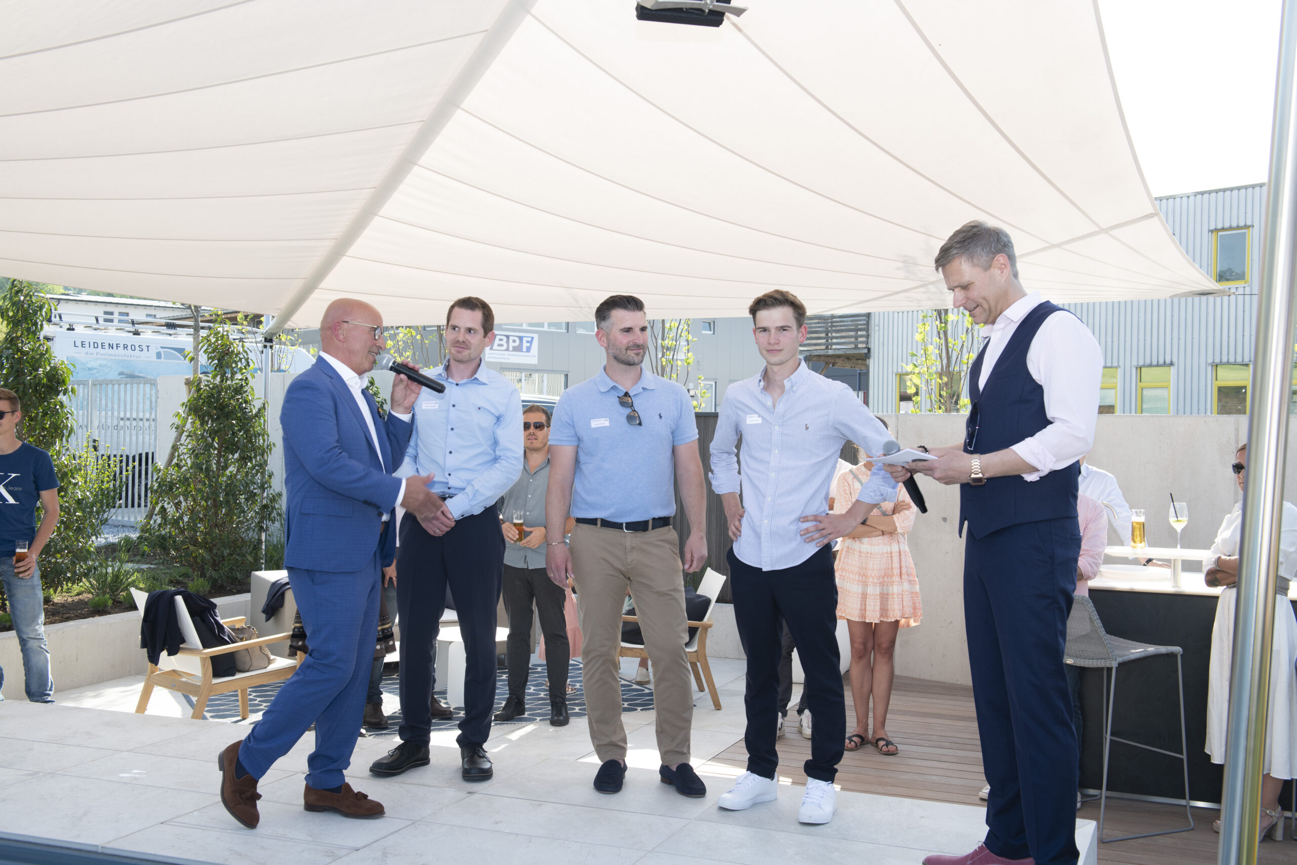 120 invited guests came to the opening event, who enjoyed the pleasant, chilled atmosphere in the new Leidenfrost pool park on a mild, early summer evening with lounge music. The radio and television moderator Thomas Mussger opened the exhibition together with Leidenfrost Managing Director Hans Poinstingl (pictured above with bsw President Dietmar Rogg) and charmingly led through the evening.